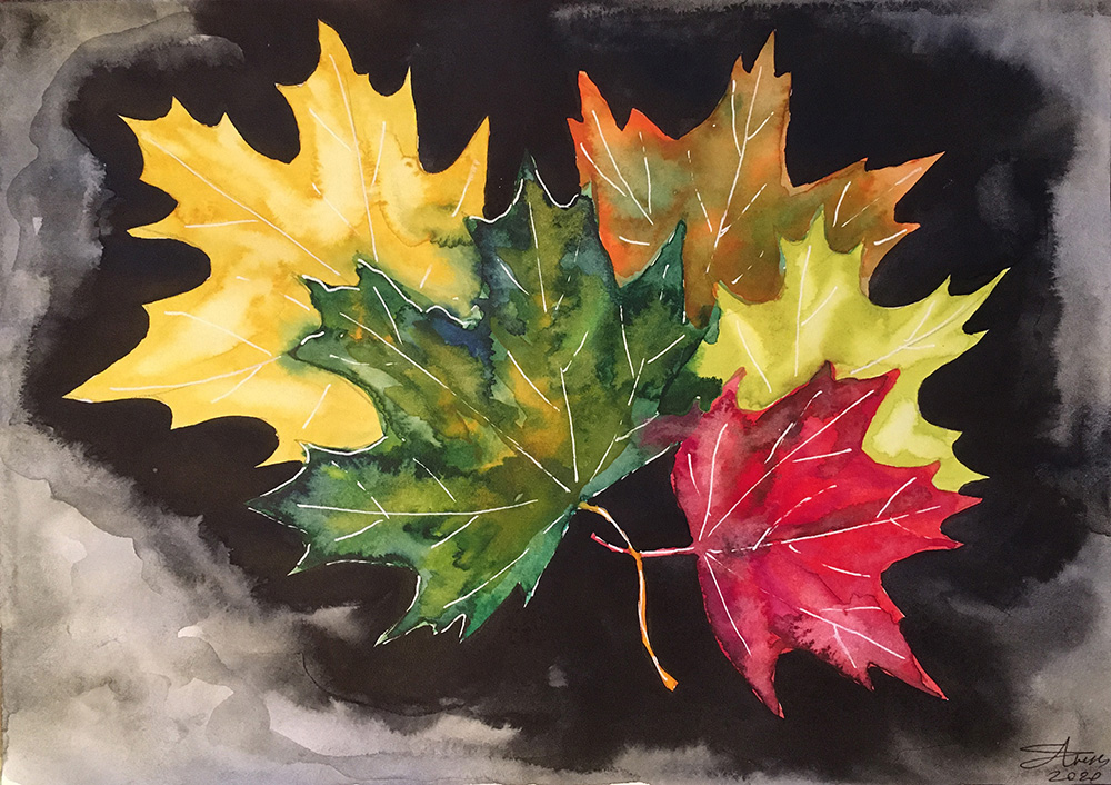 Акварель, белая гелевая ручка, бумага